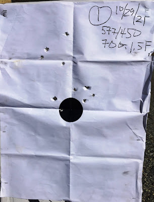 For visual reference, the paper sheet used for the targets is 18"x23.75" and the black dot used for the bullseye is 3". And for the observant, Table Two was shot with a pistol, which explains why these go from one directly to three.